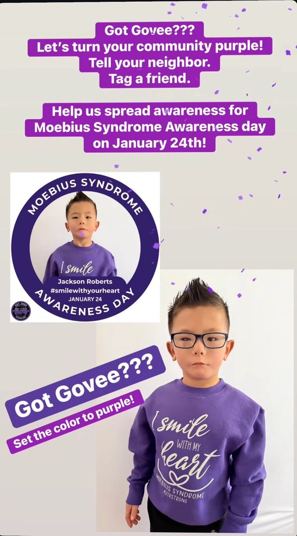 Moebius Syndrome Awareness Day is fast approaching on January 24th! Near and far, get your purple ready!!!