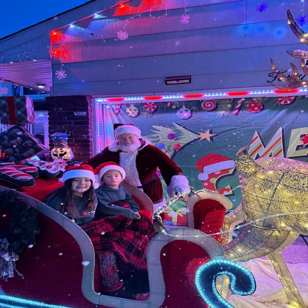 Mila (sister), Jackson and Santa hanging out on a chilly winter evening. Jackson was so thrilled to hang out with Santa and he was asking him all kinds of questions.,
